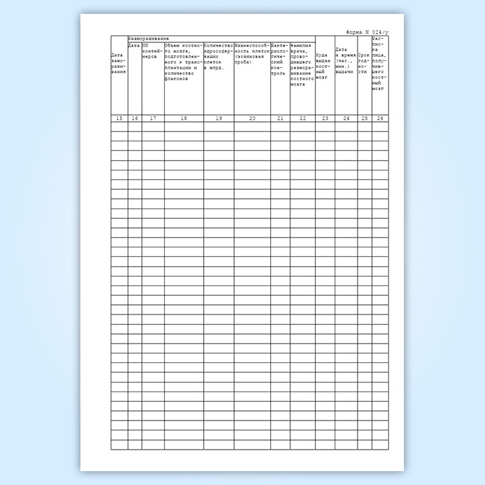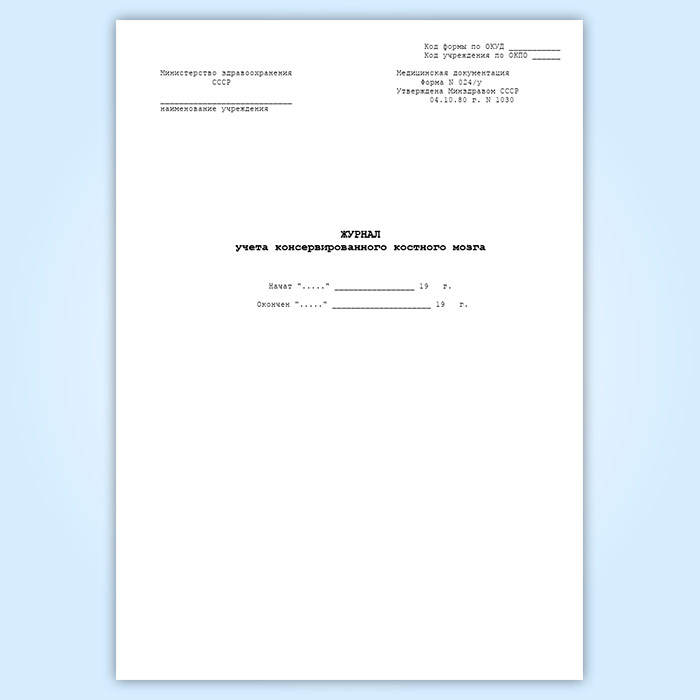 Журнал учета консервированного костного мозга (форма 024/у) в Чите купить