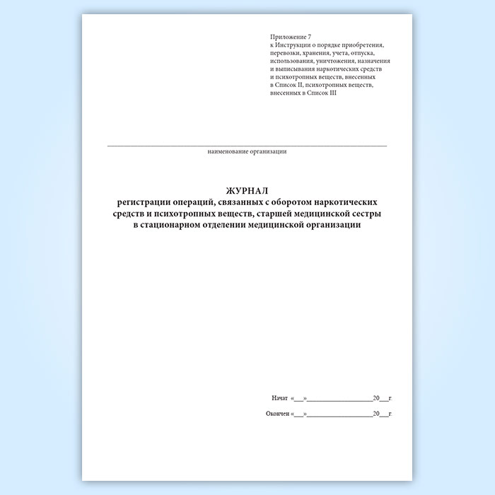 Журнал регистрации операций, связанных с оборотом наркотических средств и психотропных веществ старшей медицинской сестры в стационарном отделении медицинской организации в Чите купить