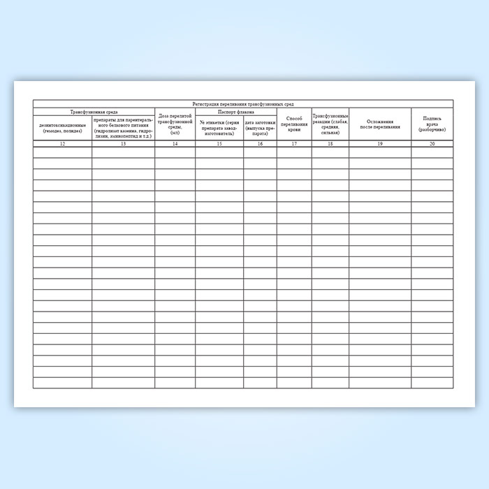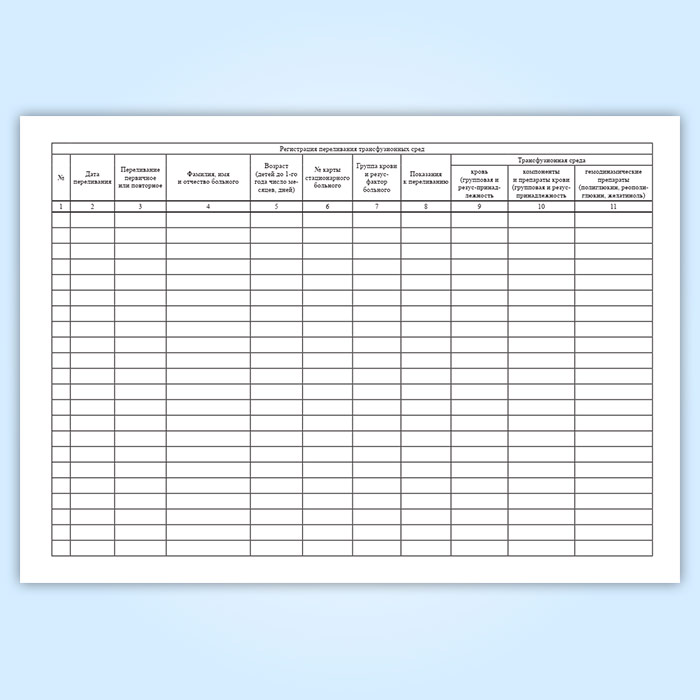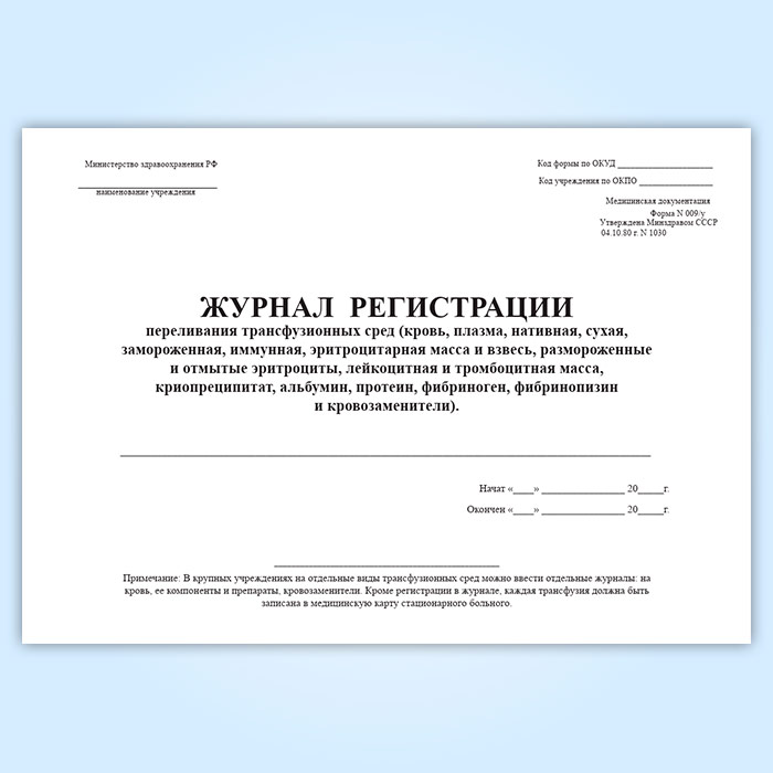 Журнал регистрации переливания трансфузионных сред (форма 009/у) в Чите купить