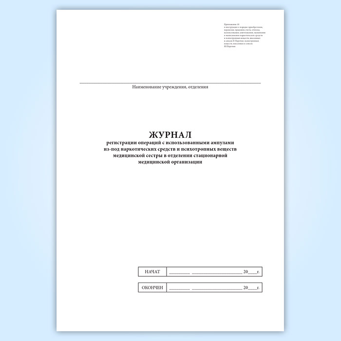 Журнал регистрации операций с использованными ампулами из-под наркотических средств и психотропных веществ медицинской сестры в отделении стационарной медицинской организации в Чите купить