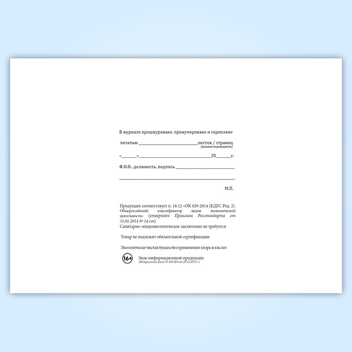Вы получаете печатную продукцию прошнурованной и c местом для вашей печати в соответствии с действующими нормативными документами: