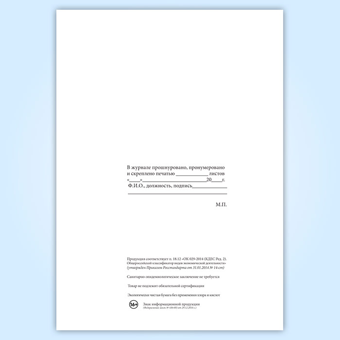 Вы получаете печатную продукцию прошнурованной и c местом для вашей печати в соответствии с действующими нормативными документами: