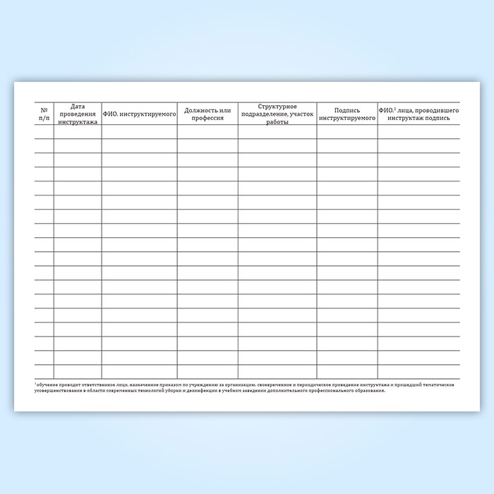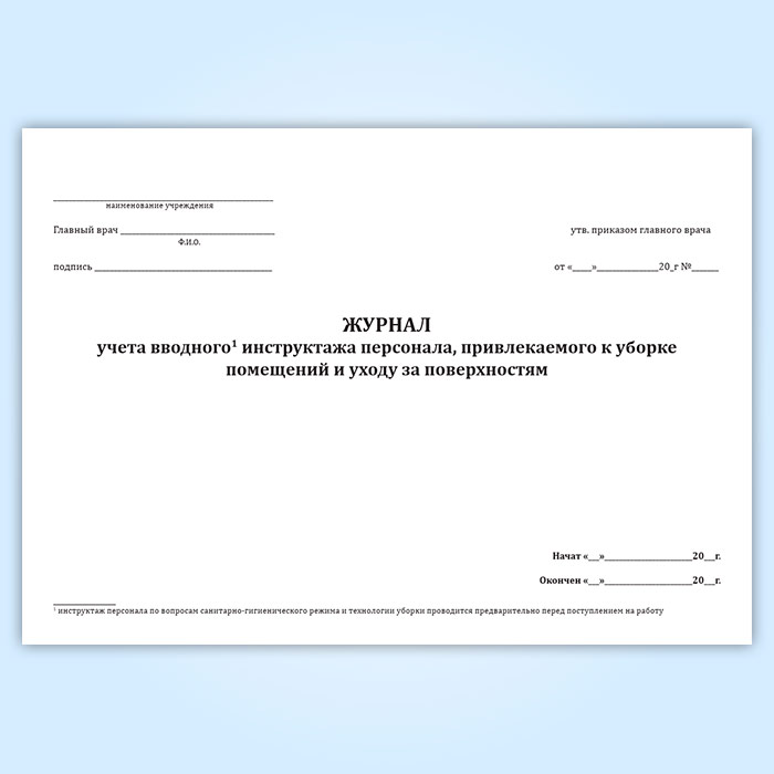 Журнал учета вводного инструктажа персонала, привлекаемого к уборке помещений и уходу за поверхностями в Чите купить