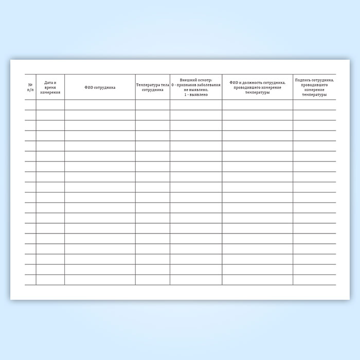 Журнал учета измерения температуры сотрудников (горизонтальный) в Чите купить