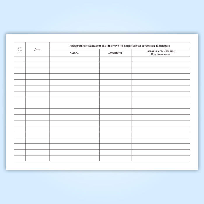 Журнал учета контактов сотрудника (в течение дня) в Чите купить