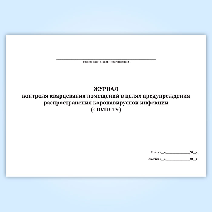 Журнал контроля кварцевания помещений в целях предупреждения распространения коронавирусной инфекции (COVID-19) в Чите купить