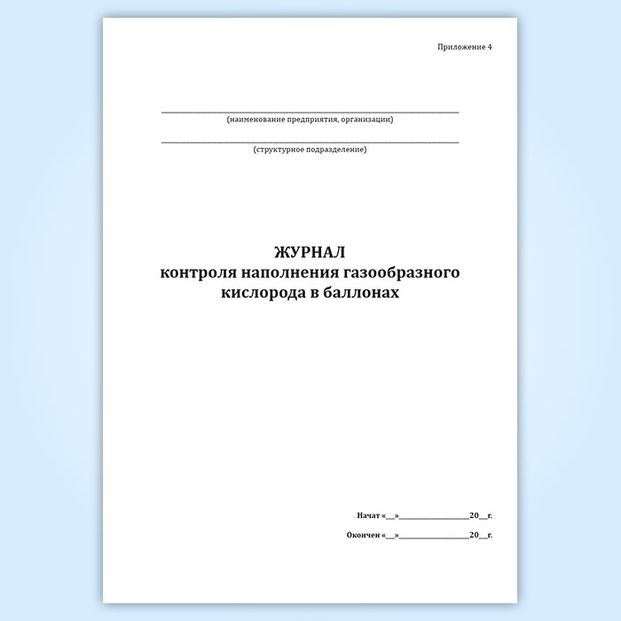 Журнал контроля наполнения газообразного кислорода в баллонах в Чите купить