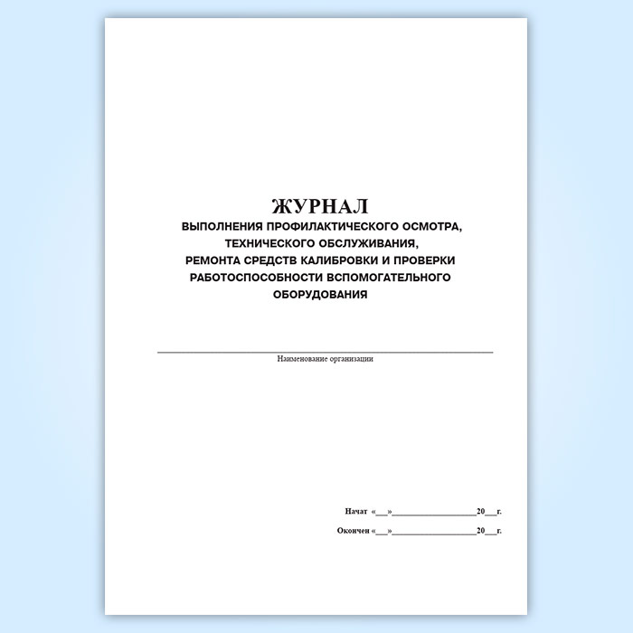 Журнал выполнения профилактического осмотра, технического обслуживания, ремонта средств калибровки и проверки работоспособности вспомогательного оборудования в Чите купить