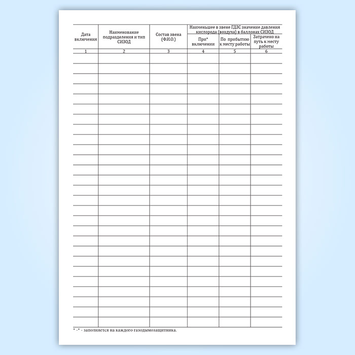 Журнал учета работающих звеньев газодымозащитной службе (ГДЗС) в Чите купить
