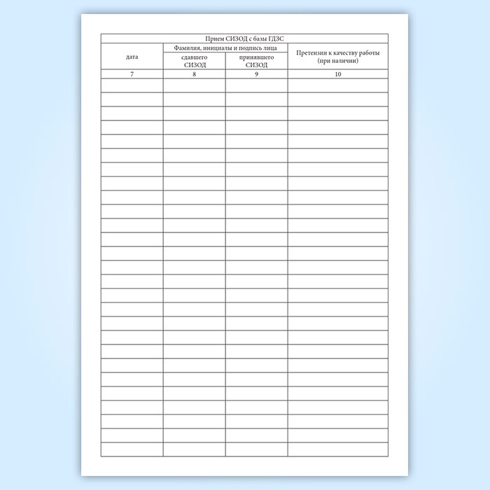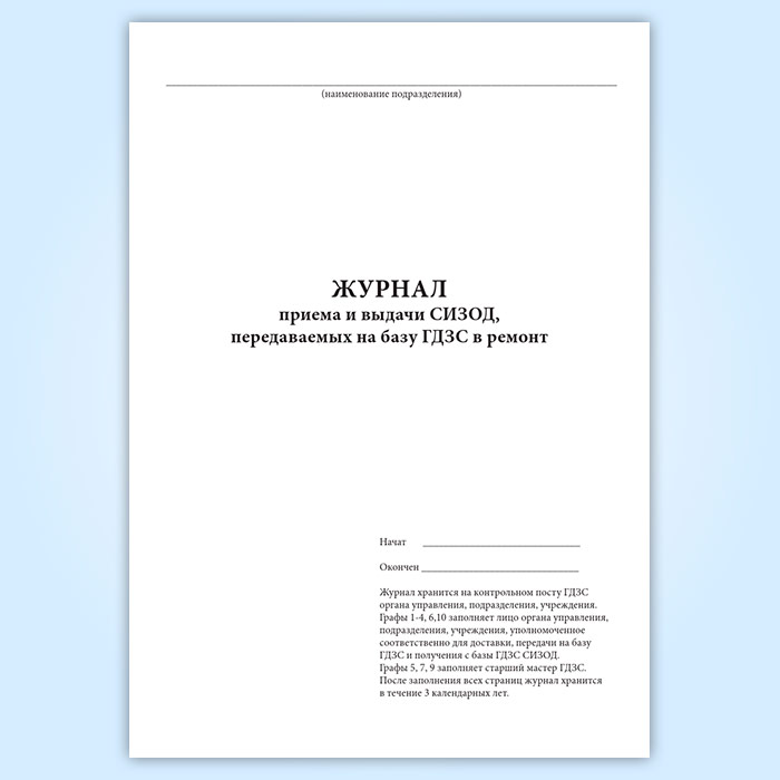Журнал приема и выдачи СИЗОД, передаваемых на базу ГДЗС в ремонт в Чите купить