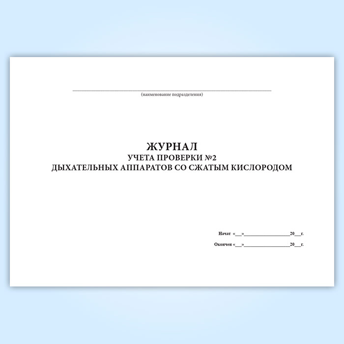 Журнал учета проверки № 2 дыхательных аппаратов со сжатым кислородом в Чите купить
