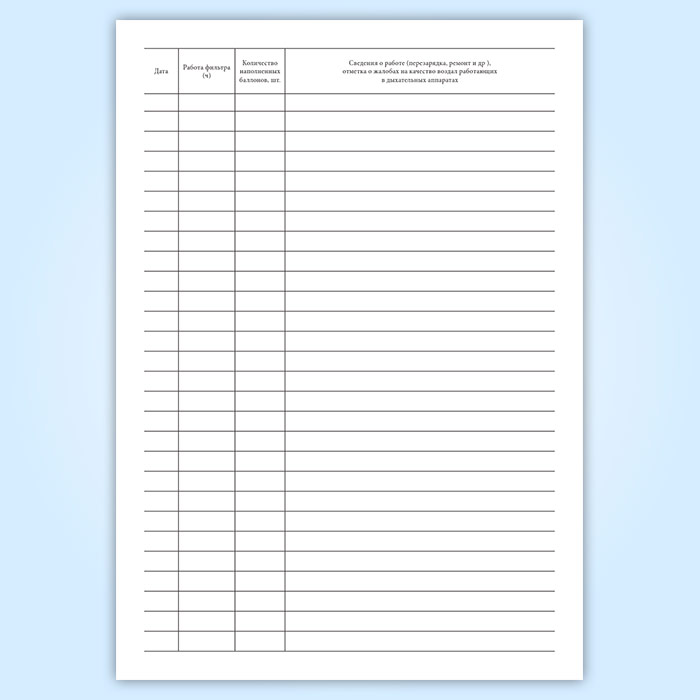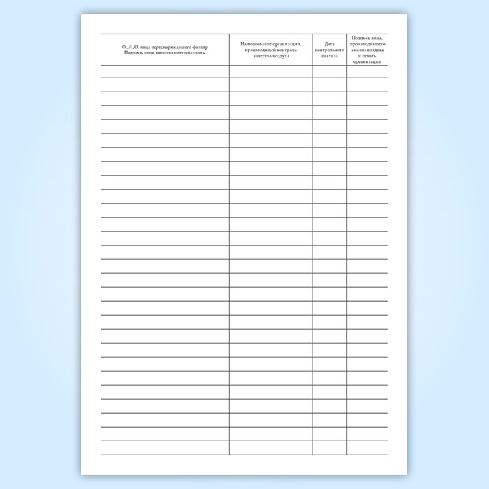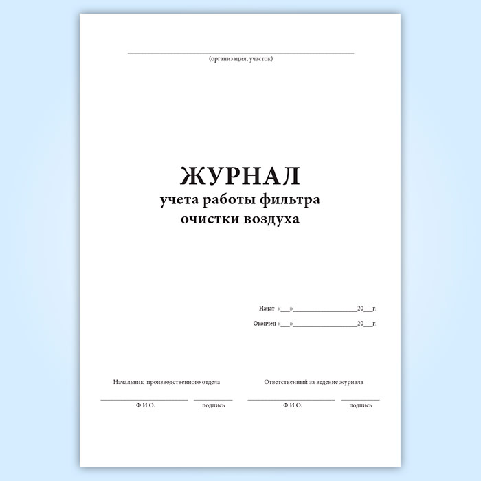Журнал учета работы фильтра очистки воздуха в Чите купить