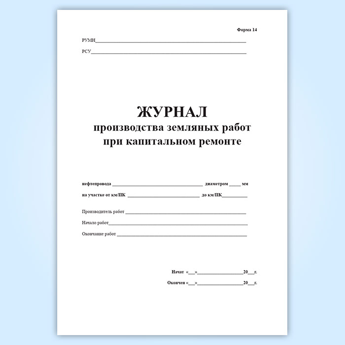Журнал производства земляных работ при капитальном ремонте (форма 14) в Чите купить