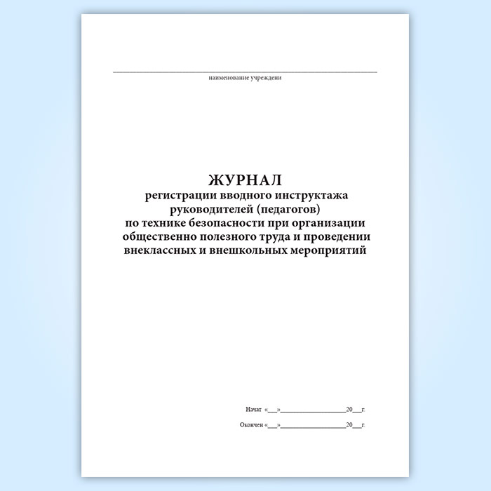 Журнал регистрации вводного инструктажа руководителей (педагогов) по технике безопасности при организации общественно полезного труда и проведении внеклассных и внешкольных мероприятий в Чите купить