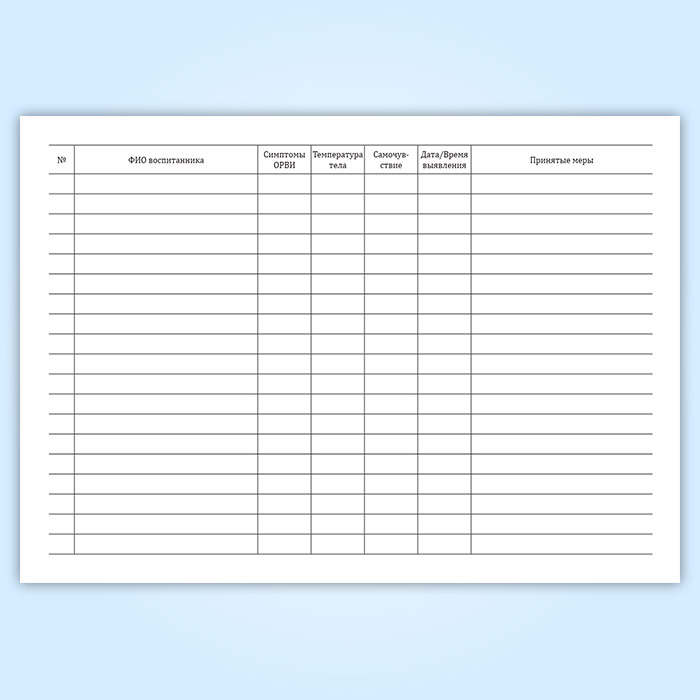 Журнал учета воспитанников с выявленными симптомами ОРВИ в Чите купить