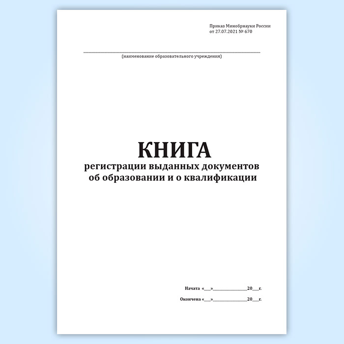 Книга регистрации выданных документов об образовании и о квалификации (Приказ Минобрнауки России от 27.07.2021 № 670) в Чите купить