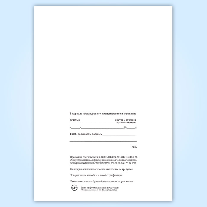 Вы получаете печатную продукцию прошнурованной и c местом для вашей печати в соответствии с действующими нормативными документами: