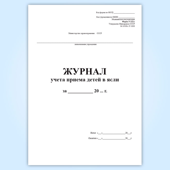 Журнал учета приема детей в ясли (форма 122/у) в Чите купить