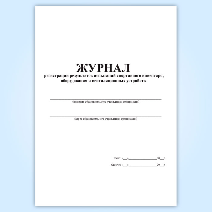 Журнал регистрации результатов испытаний спортивного инвентаря, оборудования и вентиляционных устройств в Чите купить
