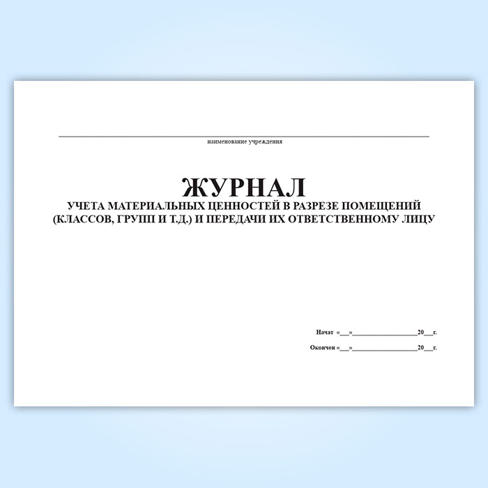 Журнал учета материальных ценностей в разрезе помещений (классов, групп и т.д.) и передачи их ответственному лицу в Чите купить