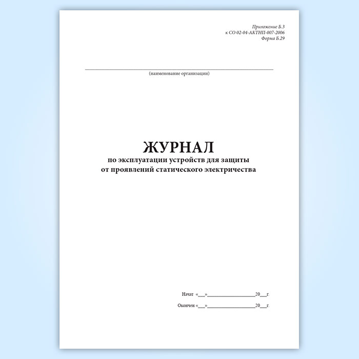 Журнал по эксплуатации устройств для защиты от проявлений статического электричества (форма Б.29) в Чите купить