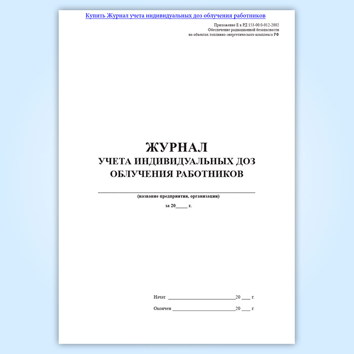Журнал учета индивидуальных доз облучения работников в Чите купить