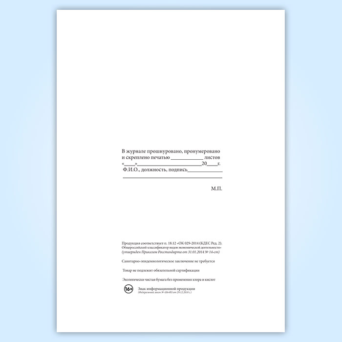 Вы получаете печатную продукцию прошнурованной и c местом для вашей печати в соответствии с действующими нормативными документами: