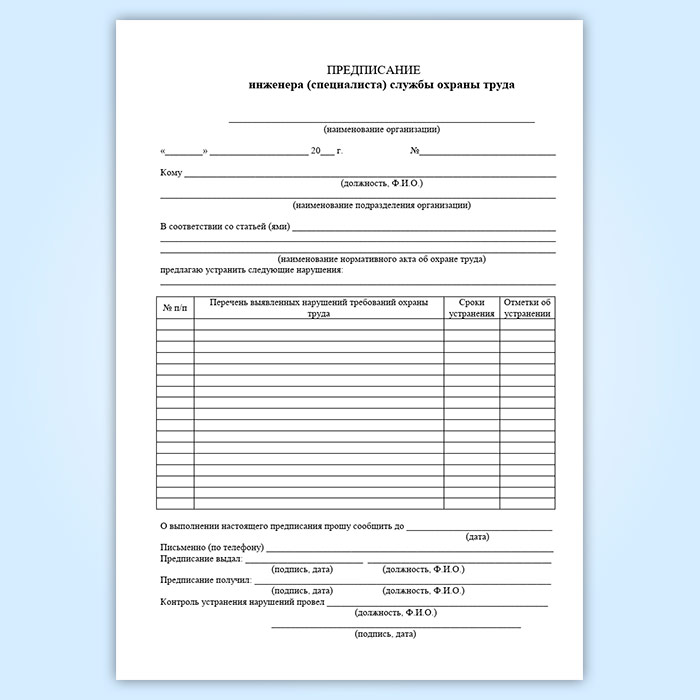 Журнал учета выдачи предписаний инженера (специалиста) службы охраны труда в Чите купить