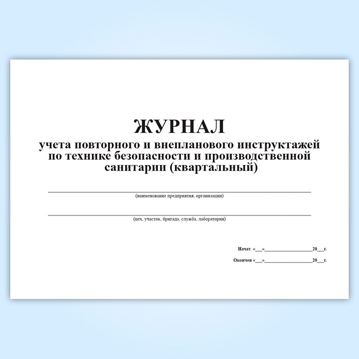 Журнал учета повторного и внепланового инструктажей по технике безопасности и производственной санитарии (квартальный) в Чите купить