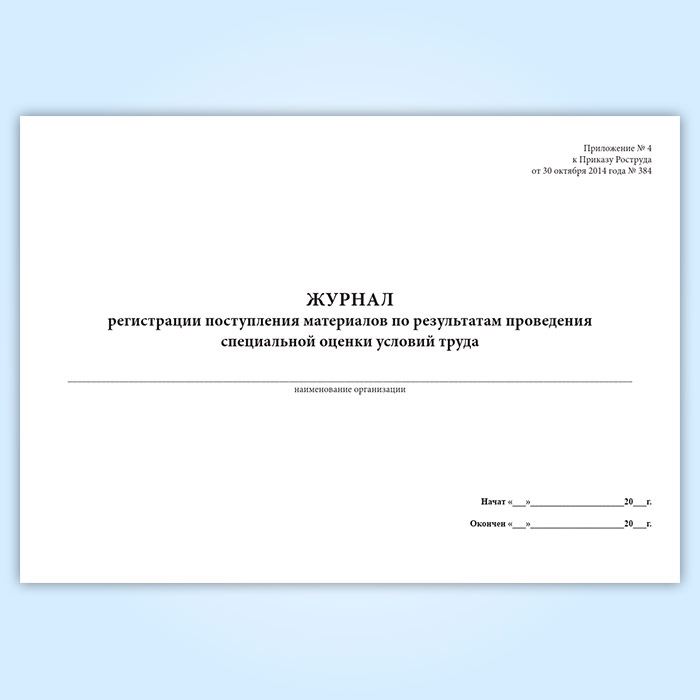 Журнал регистрации поступления материалов по результатам проведения специальной оценки условий труда в Чите купить