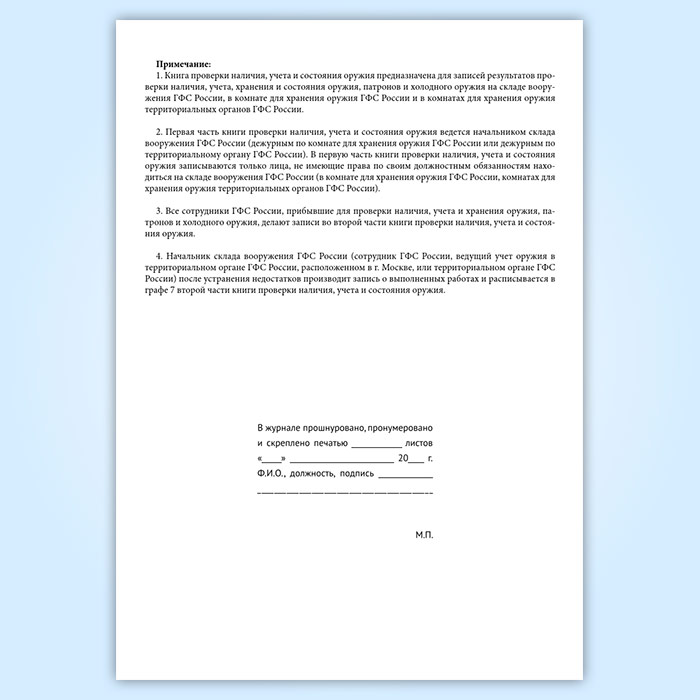 Книга проверки наличия, учета и состояния оружия (форма 20) в Чите купить