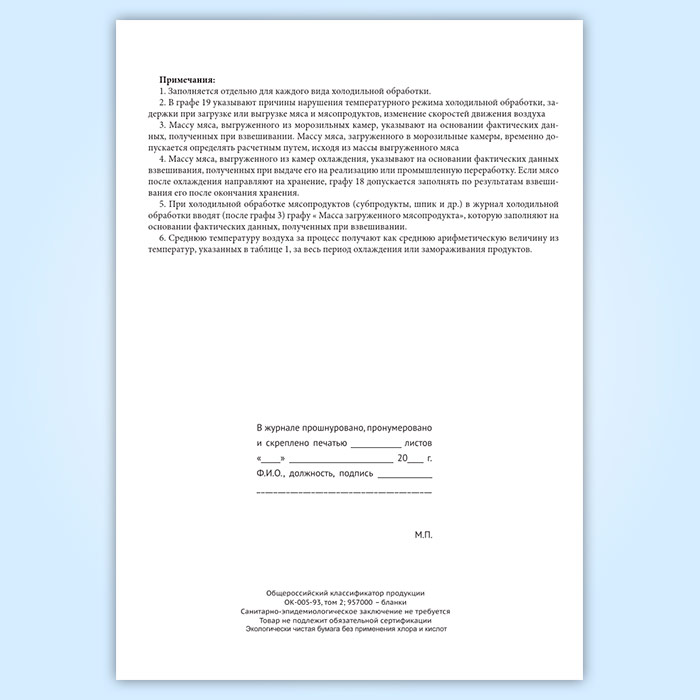 Журнал холодильной обработки мяса и мясопродуктов в камерах охлаждения и замораживания в Чите купить