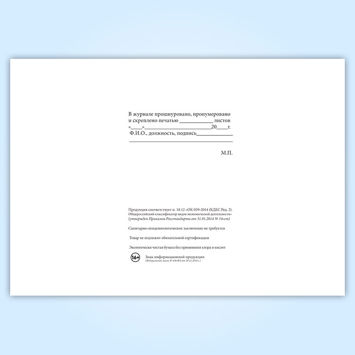 Вы получаете печатную продукцию прошнурованной и c местом для вашей печати в соответствии с действующими нормативными документами: