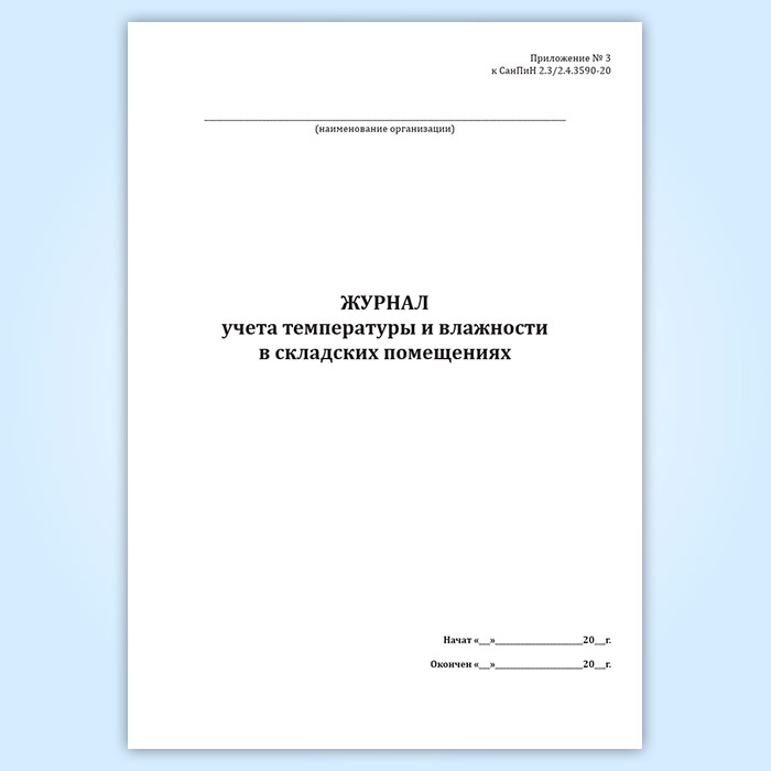 Журнал учета температуры и влажности в складских помещениях (СанПиН 2.3/2.4.3590-20) в Чите купить