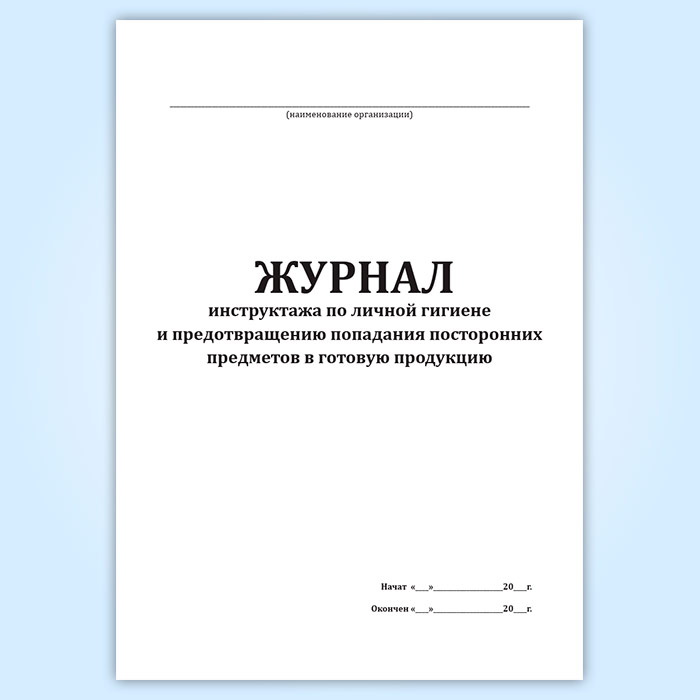 Журнал инструктажа по личной гигиене и предотвращению попадания посторонних предметов в готовую продукцию в Чите купить