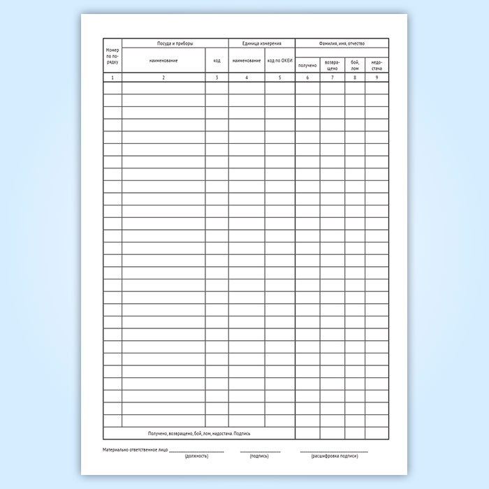 Журнал учета столовой посуды и приборов, выдаваемых подотчет сотрудникам предприятия (специализированная форма 16-ОПит) в Чите купить