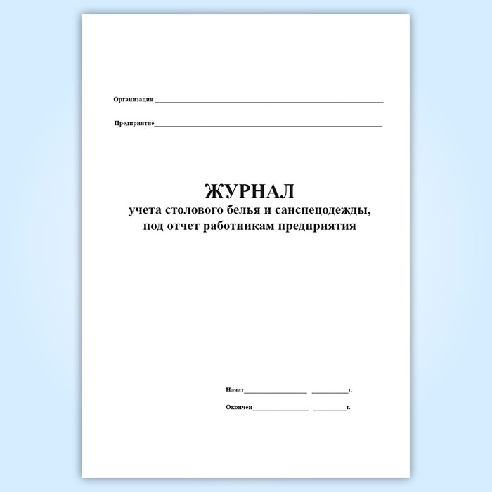 Журнал учета столового белья и санспецодежды, выдаваемой под отчет работникам предприятия в Чите купить