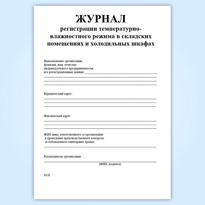 Журнал регистрации температурно-влажностного режима в складских помещениях и холодильных шкафах в Чите купить