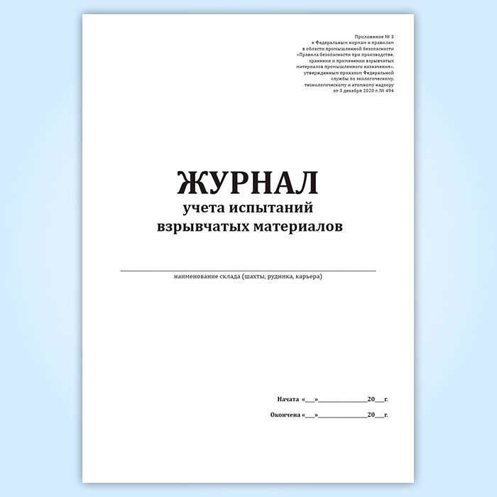 Журнал учета испытаний взрывчатых материалов в Чите купить