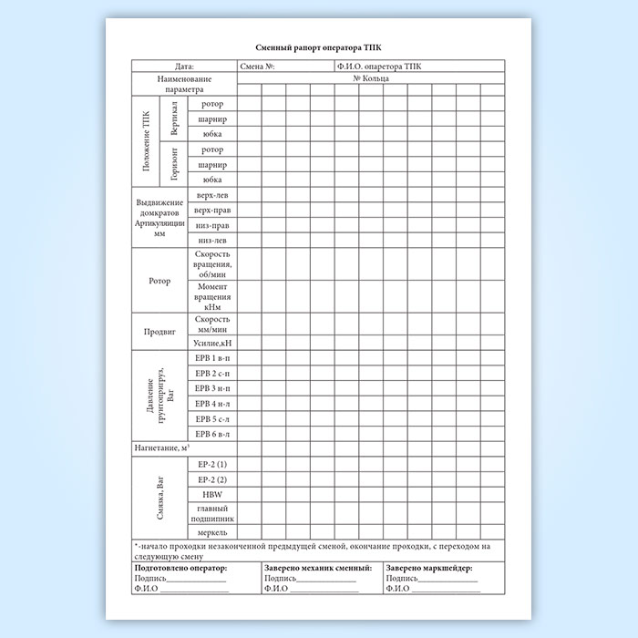 Журнал сменных рапортов операторов тоннелепроходческого комплекса в Чите купить