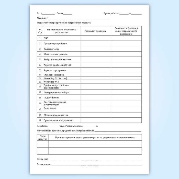Журнал приема-сдачи смены дробильно-погрузочного агрегата в Чите купить