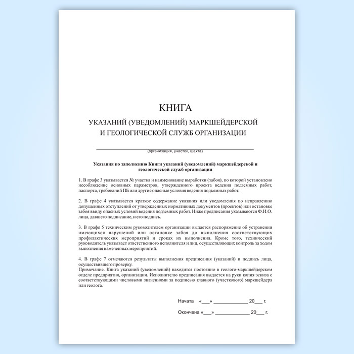 Книга указаний (уведомлений) маркшейдерской и геологической служб организации в Чите купить