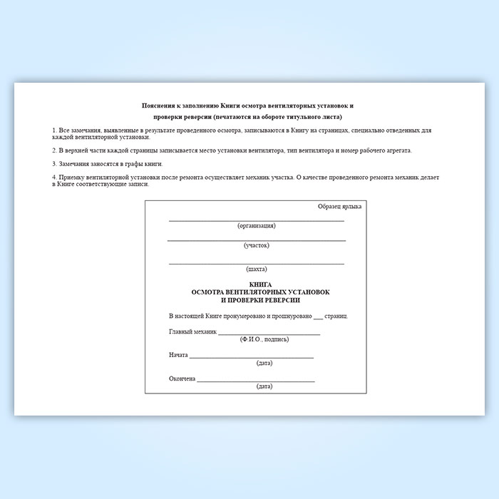 Книга осмотра вентиляторных установок и проверки реверсии в Чите купить
