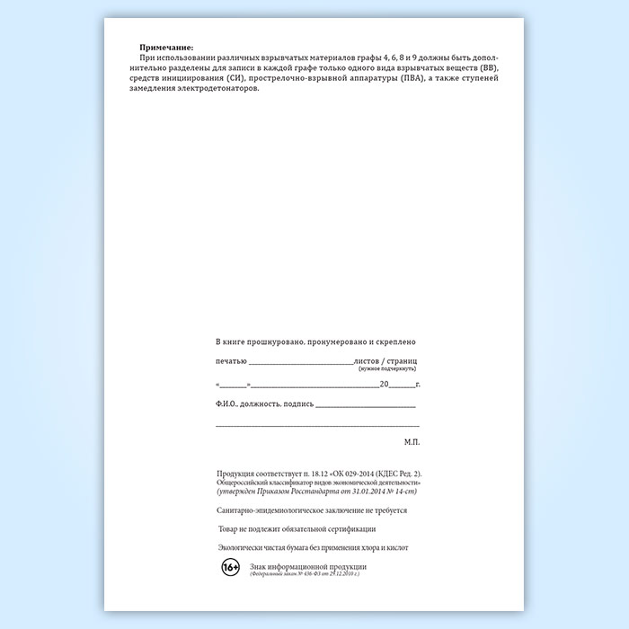Книга учета выдачи и возврата взрывчатых материалов в Чите купить