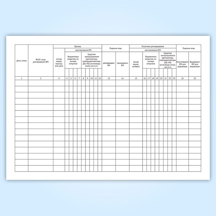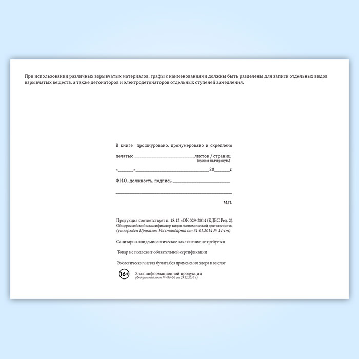 Книга учета прихода и расхода взрывчатых материалов участкового пункта хранения ВМ в Чите купить