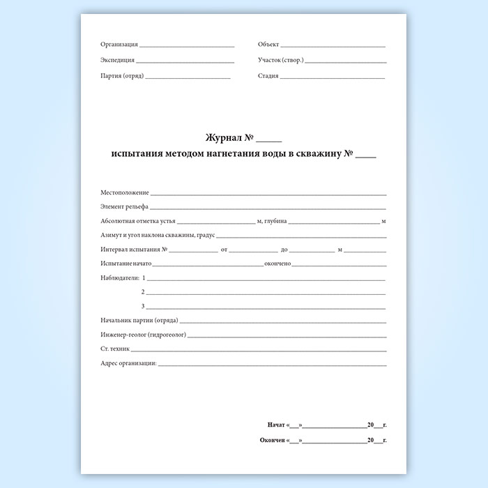 Журнал испытания методом нагнетания воды в скважину в Чите купить