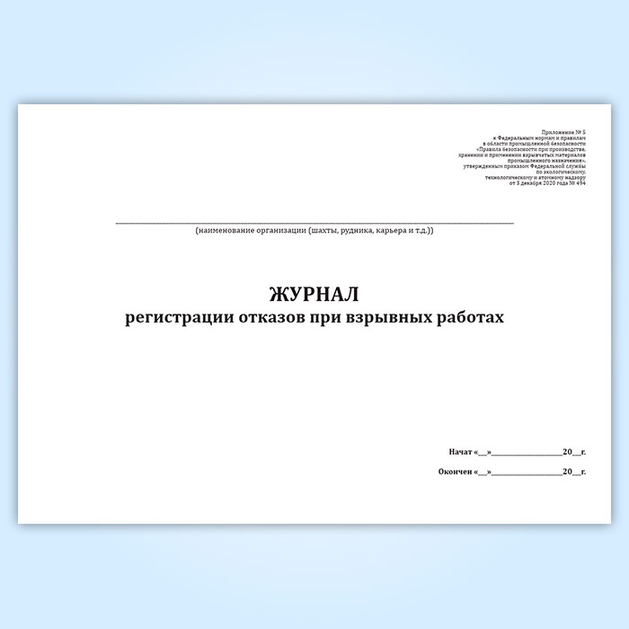 Журнал регистрации отказов при взрывных работах в Чите купить