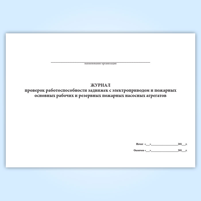 Журнал проверок работоспособности задвижек с электроприводом и пожарных основных рабочих и резервных пожарных насосных агрегатов в Чите купить
