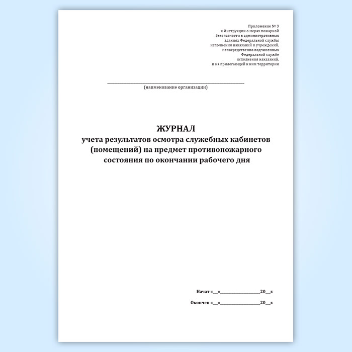 Журнал учета результатов осмотра служебных кабинетов (помещений) на предмет противопожарного состояния по окончании рабочего дня в Чите купить