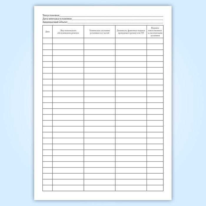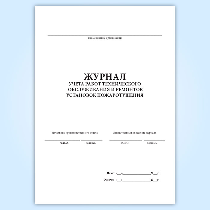 Журнал учета работ технического обслуживания и ремонтов установок пожаротушения в Чите купить